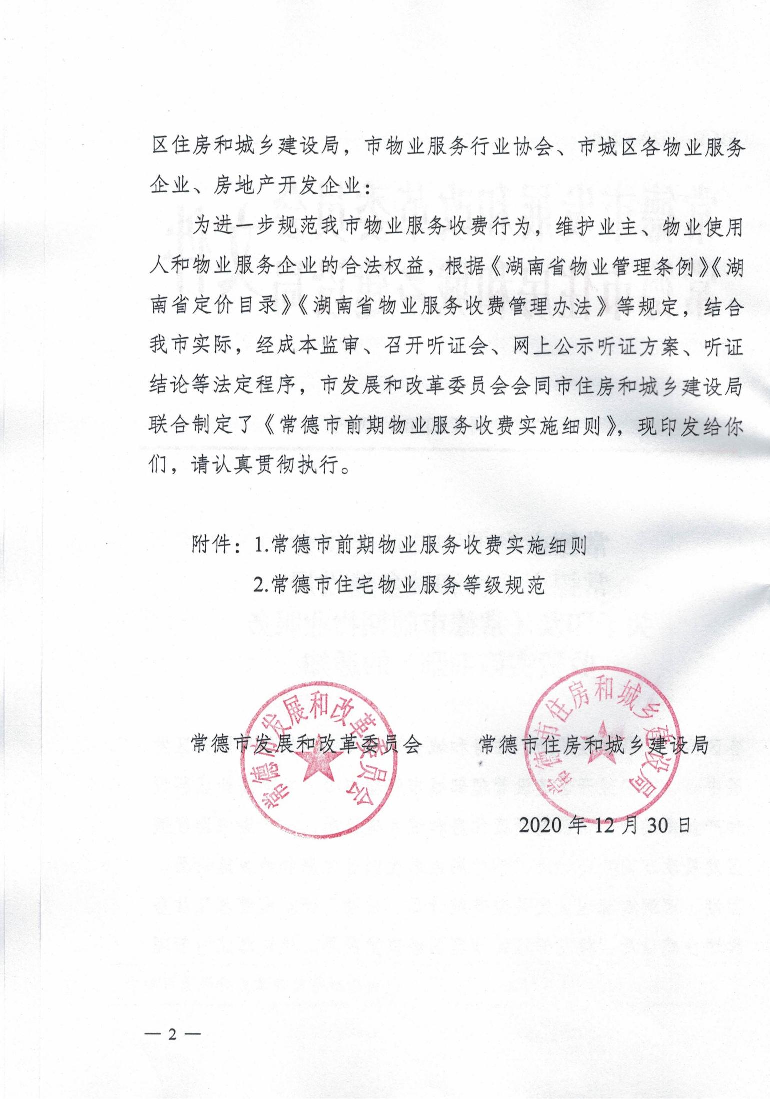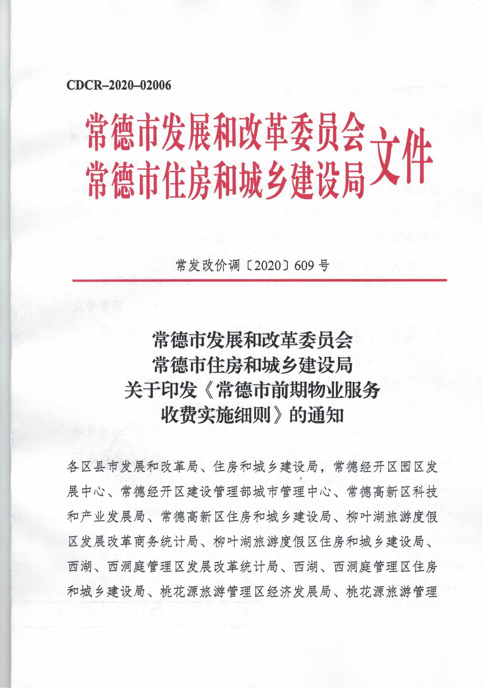 常德市發(fā)展和改革委員會 常德市住房和城鄉(xiāng)建設(shè)局 關(guān)于印發(fā)《常德市前期物業(yè)服務(wù) 收費實施細(xì)則》的通知